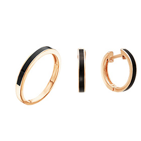 Украшения на фото выше можно изучить подробнее по кодам: позолоченный комплект с черной жемчужиной - 0359488 , 0505067 ; комплект из золоченого серебра с эмалью - 1205683 , 1205862