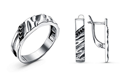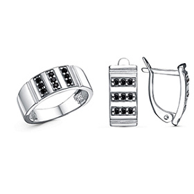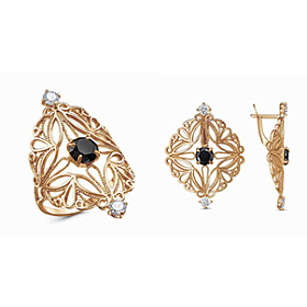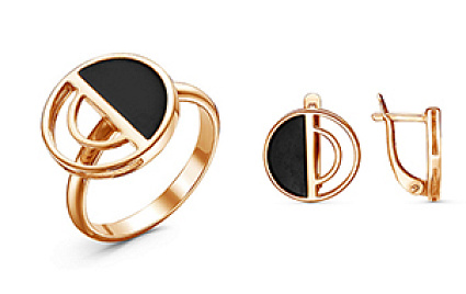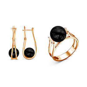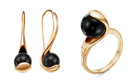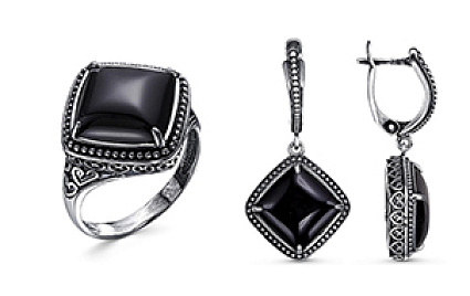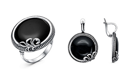 Изделия на фото можно найти в нашем Каталоге: комплект из золоченого серебра с ювелирным стеклом - 1165247 , 1165256 ; комплект из серебра со вставкой из крупного черного агата - 1307766 , 1308063