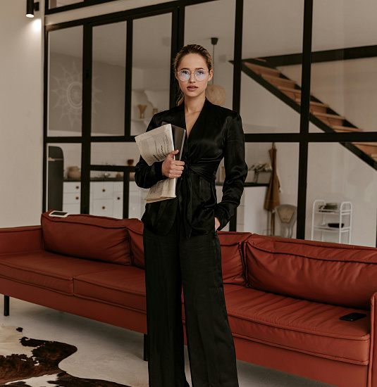 Важно помнить, что черный в деловой одежде — это синоним стиля, а не мрачности. Даже минимальные, но тщательно выбранные украшения — например, изящные серьги-гвоздики или тонкая цепочка с лаконичным кулоном — добавят образу эффектность и законченность.