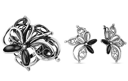 Изделия, представленные на фото выше, легко посмотреть по товарным кодам: комплект с крупным черным агатом - 0992984 , 0993220 ; комплект в винтажном стиле "ювелирное кружево" - 0316709 , 0317125