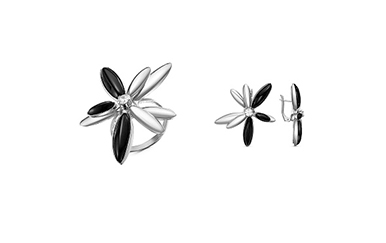 Ювелирные изделия на фото ниже можно купить в нашем Каталоге: комплект цветок с черным агатом - 0319491 ; комплект с эмалью - 1601140
