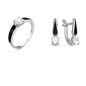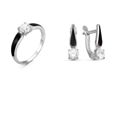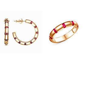Коды комплектов украшений из фотогалереи: позолоченный с белой эмалью - 0319391 ; дорожка из черных фианитов - 0319549 ; бесцветный фианит в позолоте - 0319616 ; бесцветный фианит и черная эмаль - 0319929 ; позолота с красной эмалью - 1571588 ; вставка из голубого фианита - 1595784