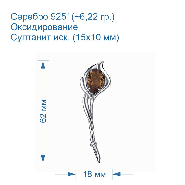 Брошь из серебра с иск. султанитом