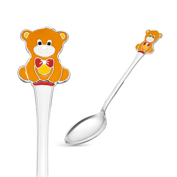 Ложка детская Медведь из серебра с эмалью