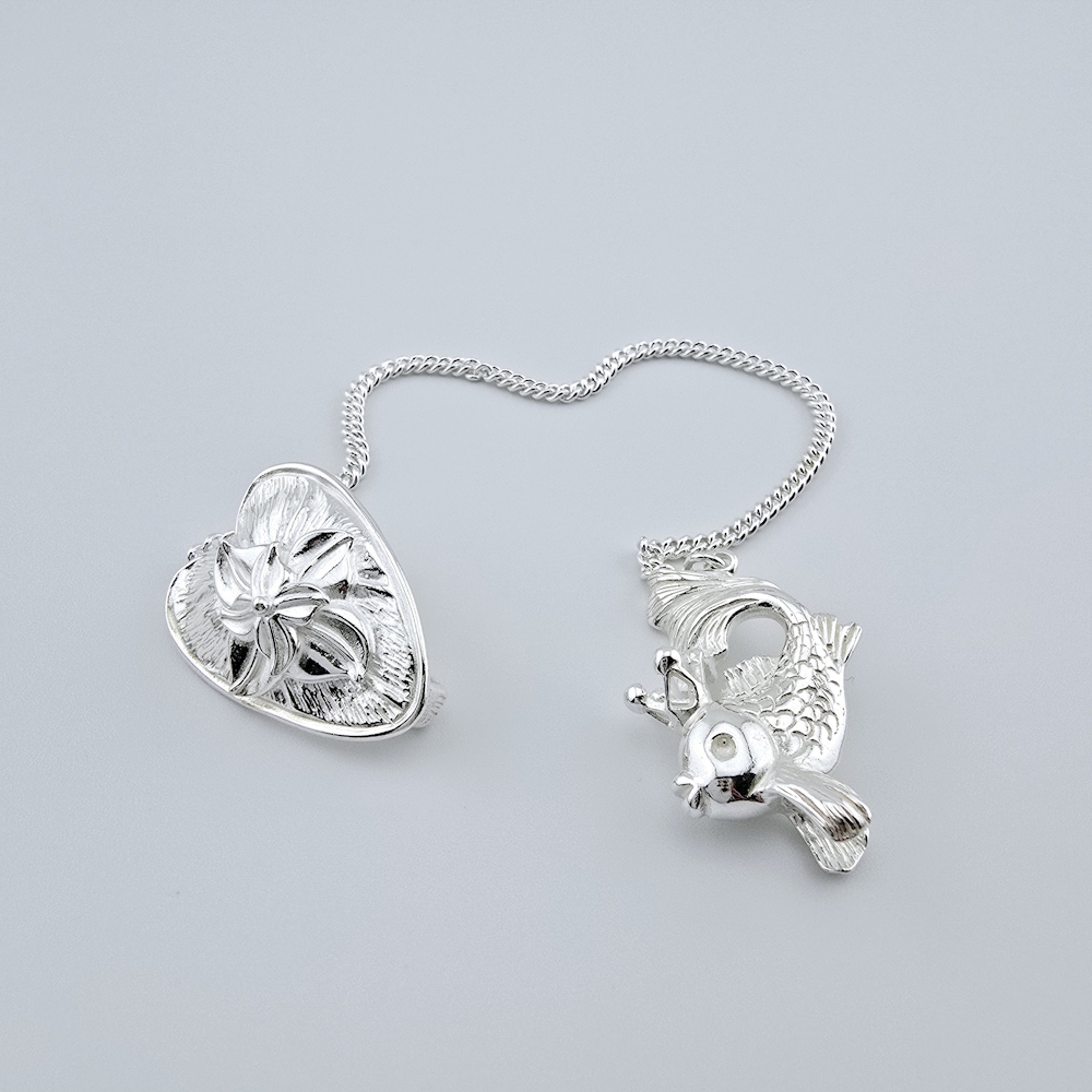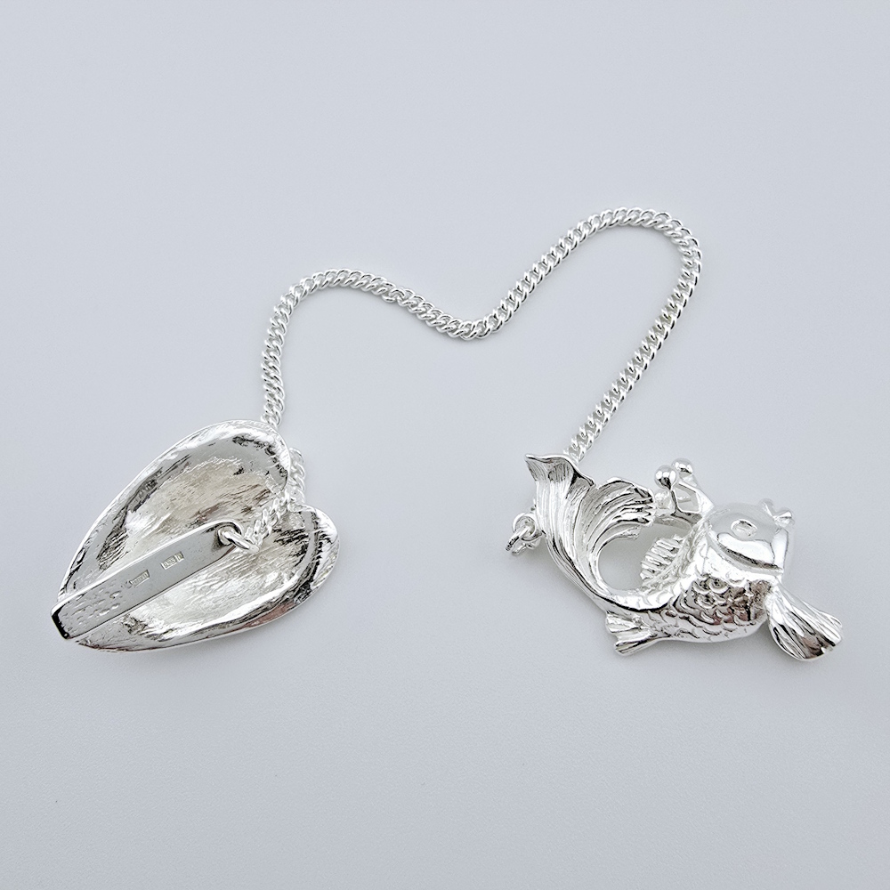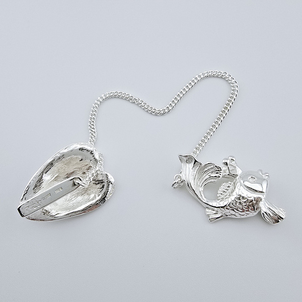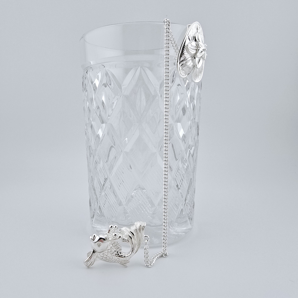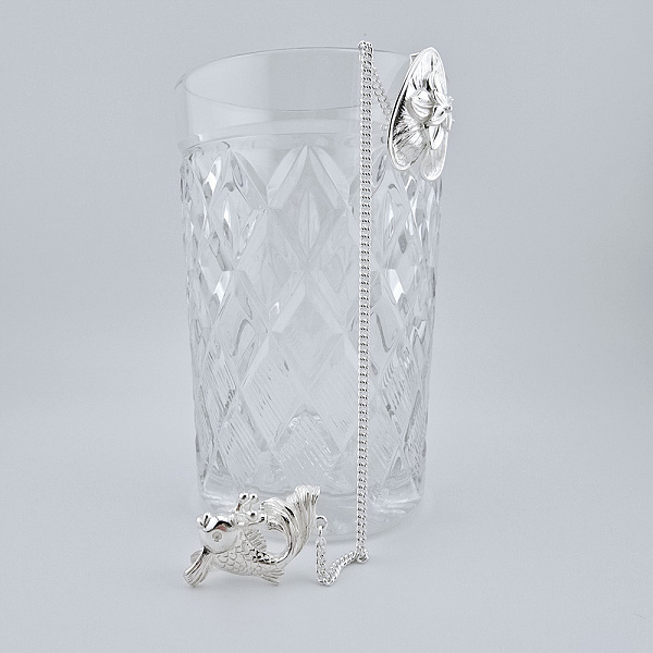 Ионизатор из серебра «Рыбка». Серебряный ионизатор для воды в виде рыбки. На конце цепочки предусмотрен специальный прижим в виде листа кувшинки. С его помощью ионизатор закрепляется за край сосуда и на цепочке опускается на дно. Серебряный ионизатор обладает бактерицидными свойствами, очищает и обогащает воду ионами серебра. Такой кухонный аксессуар станет полезным приобретением для всей семьи и ценным подарком для дорогого человека.