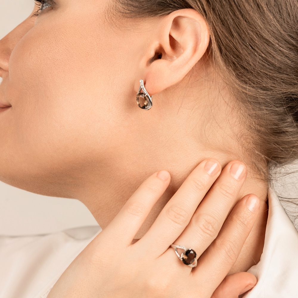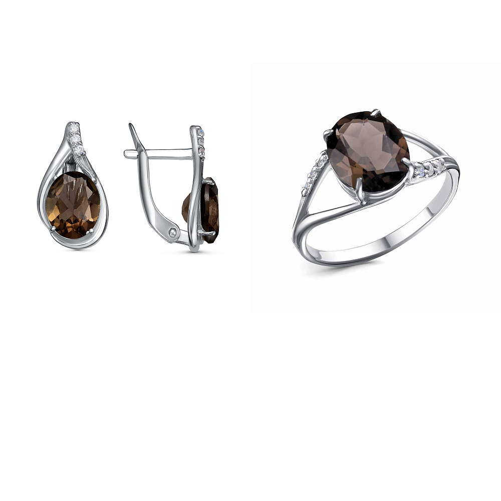 Вставка: кварц дымчатый, фианит