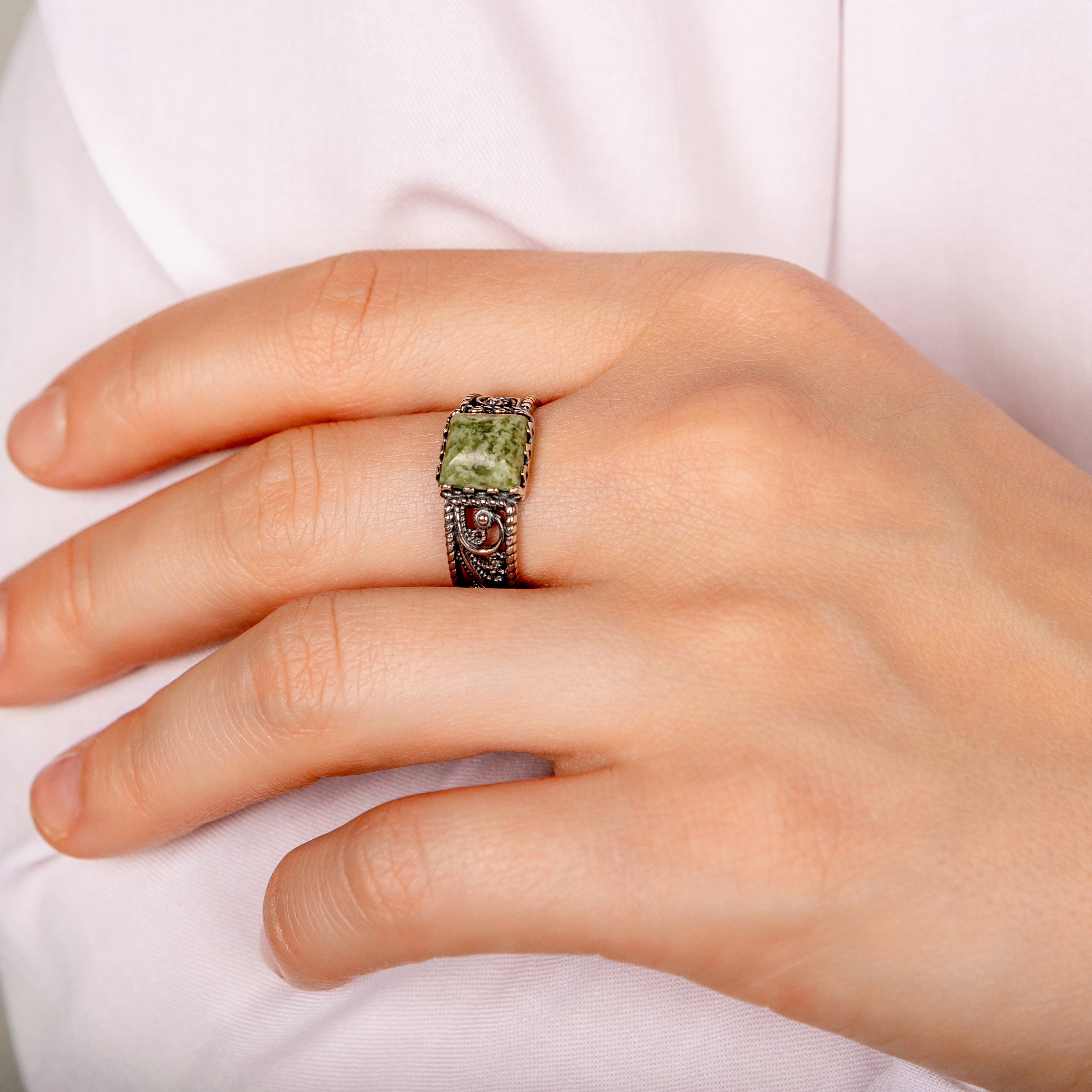 Кольцо из серебра с везувианом
