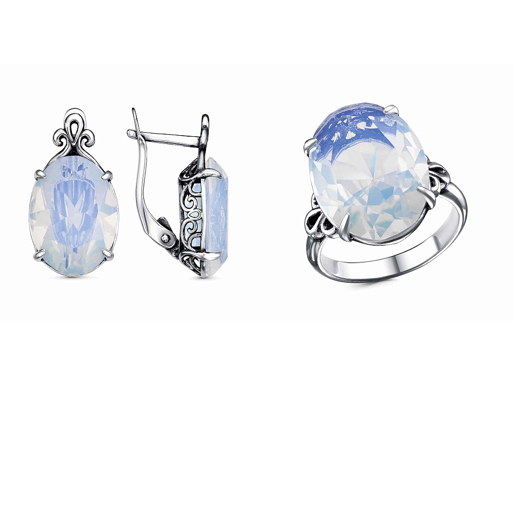 лунный камень иск., стекло ювелирное собств. огранки, фианит