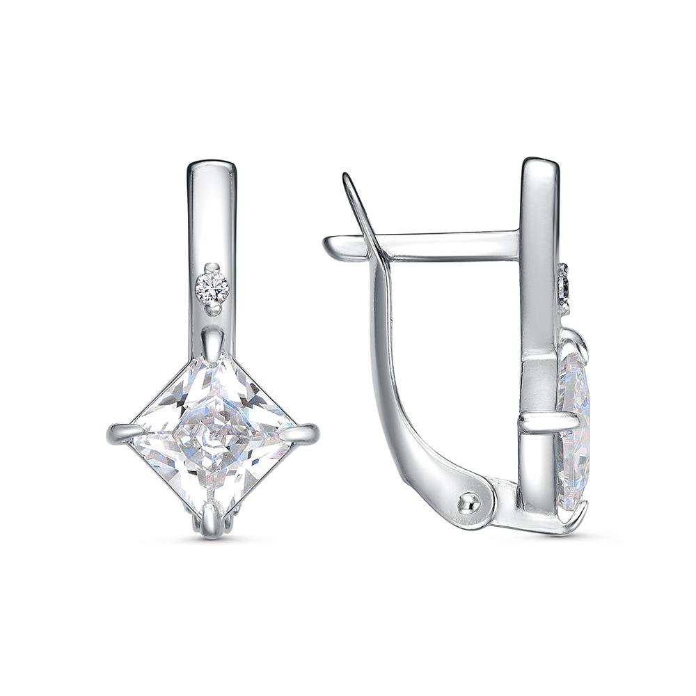 Габариты: Высота серег 18 мм, ширина 10 мм, размеры центральной вставки 6х6 мм. Рабочая зона крючка застежки 6 мм