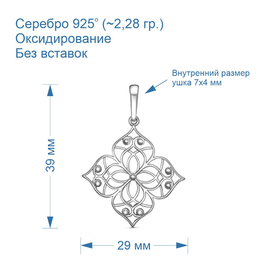 Габариты: Размеры подвески 39х29 мм, внутренний размер ушка 7х4 мм