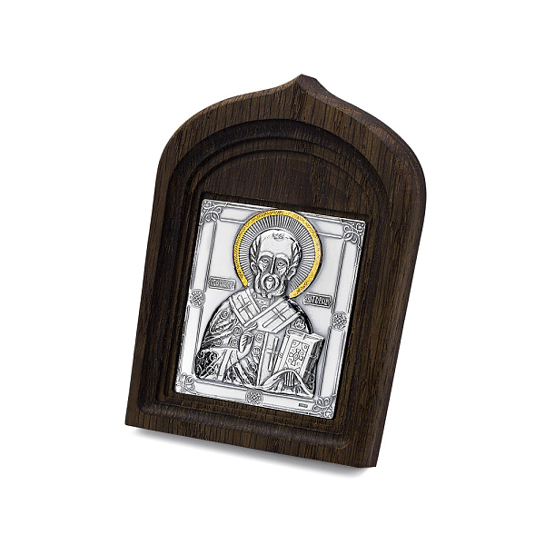 Николай Чудотворец - является покровителем всех путешественников, водителей, моряков, лётчиков и просто людей, находящихся в дороге и почитающих Николая Чудотворца. Также он покровительствует женщинам, детям, нищим, невинно осужденным и животным.Темный  оклад иконы изготовлен из дуба.