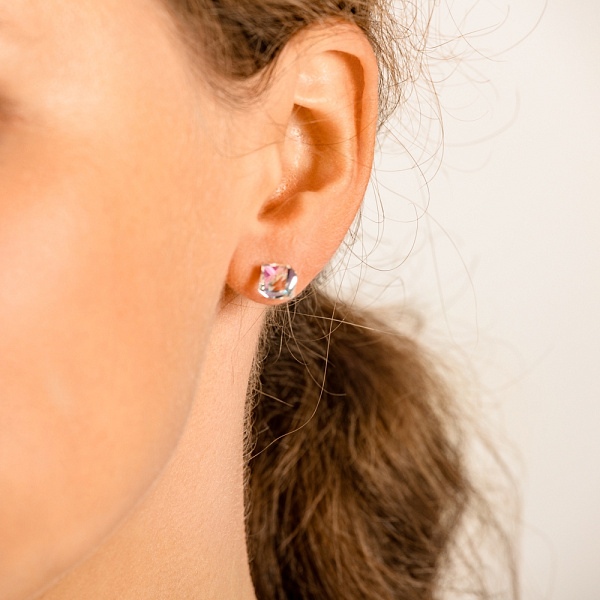 С особым вниманием необходимо относиться к изделиям с кристаллами, закрепленными на пластик. Пластик со временем может пересохнуть, а кристаллы выпасть. Чтобы этого не допустить, надо беречь эти изделия от влаги и резких перепадов температур. Обязательно исключить соприкосновение изделий с кристаллами от взаимодействия с химическими веществами, особенно агрессивными реактивами, поскольку они могут не просто повредить кристалл, но и изменить цвет пластиковой основы. Чистку производить очень аккуратно, ни в коем случае не опуская в чистящие растворы (только с помощью салфеток по уходу).