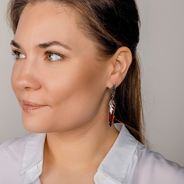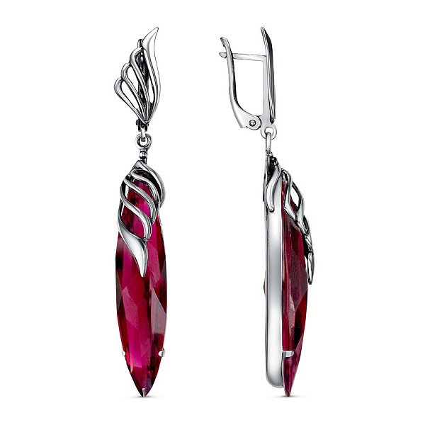 Серьги длинные с подвесками из серебра с ситаллом