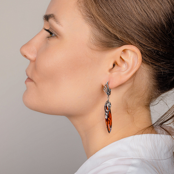 Габариты: Высота серег 64 мм, размеры вставки 39х10 мм. Рабочая зона крючка застежки 6 мм