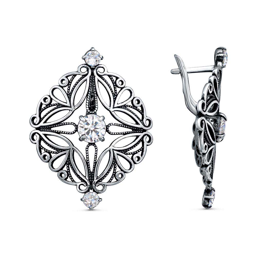 Серьги из серебра с фианитами